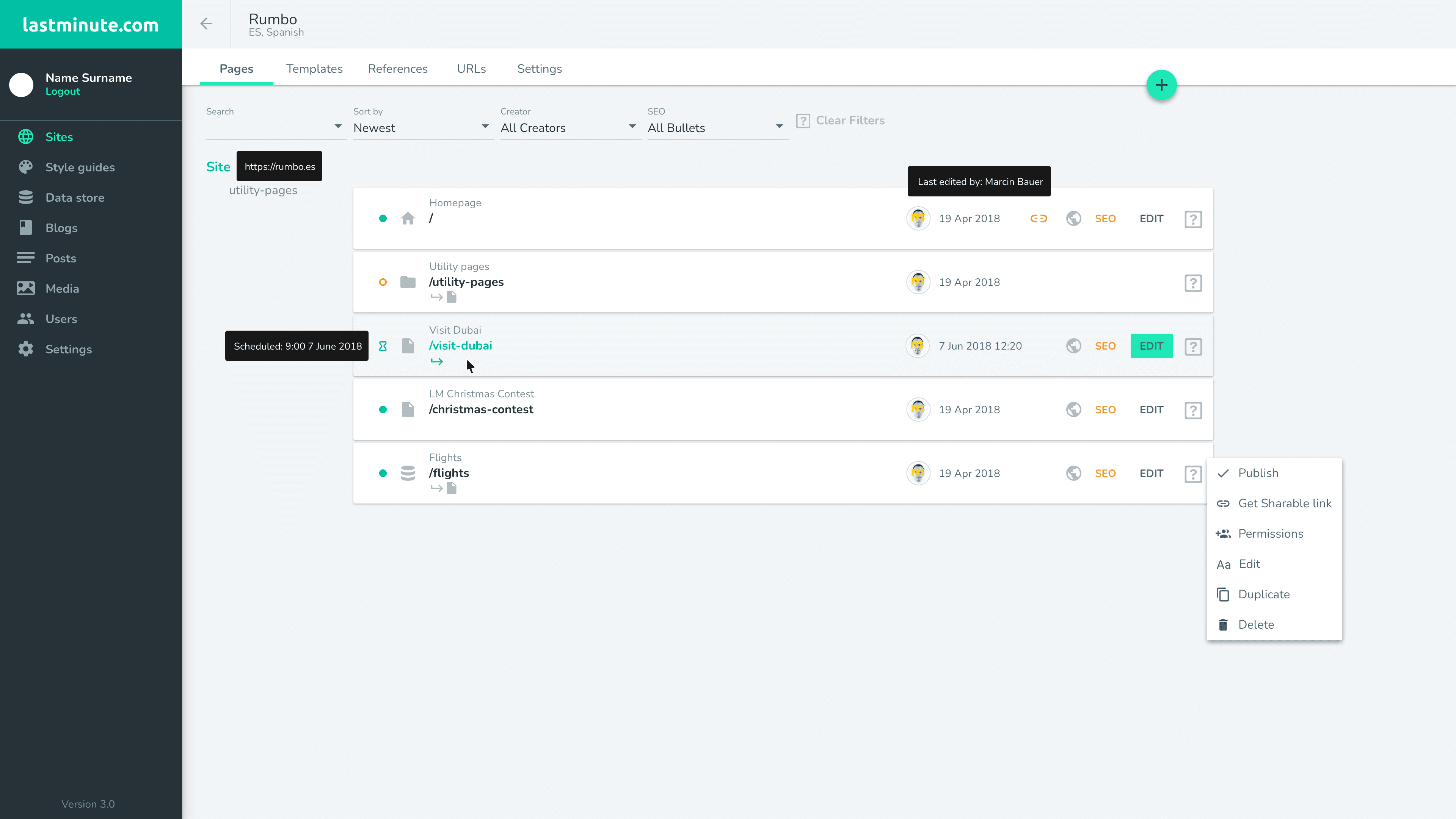 A platform designed for editors and SEO managers to internally create and oversee a travel blog featuring links to company promotions.